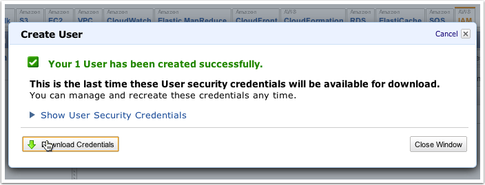 … Download the Credentials for the user