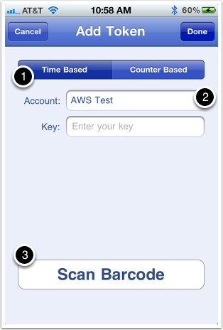 … On your iPhone: Add the Account Name and Scan the QR Code