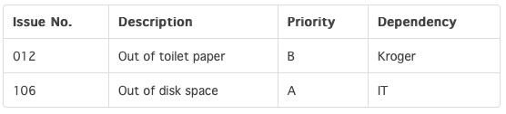 - Issue This is something that you or your team would normally be able handle on your own, but something went wrong. It’s an issue because it might affect your budget, schedule, quality, or deliverable. It’s something that can be worked around, but ultimately needs fixing. Maybe you think it’s a small low-priority issue that might wait until the next status meeting to on the chance it can be resolved before then, but don’t make that gamble. The last thing you want is for it to become a problem, and then people start asking who knew what and when. Deal with issues before they become problems.